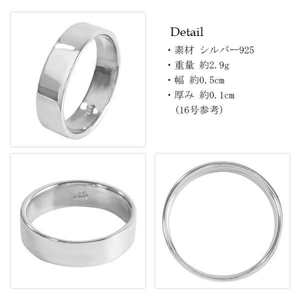 プレーン シルバー リング 幅5mm 平打ち 7〜31号 メッセージ刻印 名入れ可 指輪 メンズ レディース ユニセックス シルバーアクセサリー