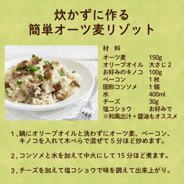 お米のように炊けるので、オートミールが苦手な方にもオススメです。