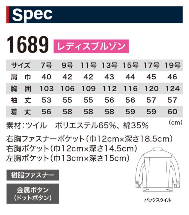 作業着 レディースブルゾン ジーベック 1689 秋冬 ジャケット ジャンパー 女性用 作業服 作業着 XEBEC