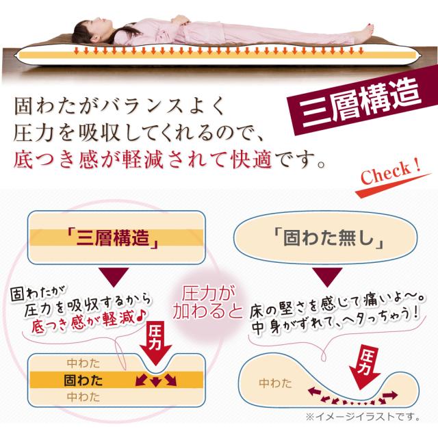 3層構造で極ボリューム!日本製 ジュニアサイズの敷布団です。