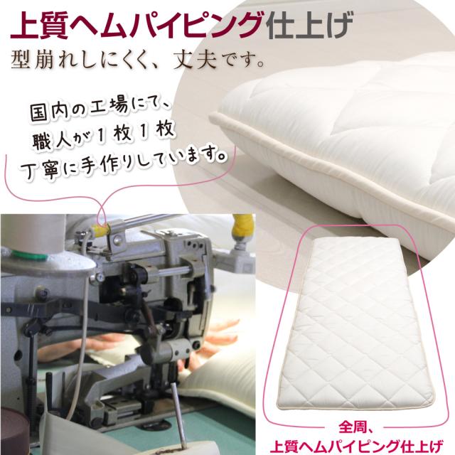 中綿の片寄りや、型崩れを起こしにくいよう仕上げてありますので、長期にわたってふかふかの感触をお楽しみいただけます。