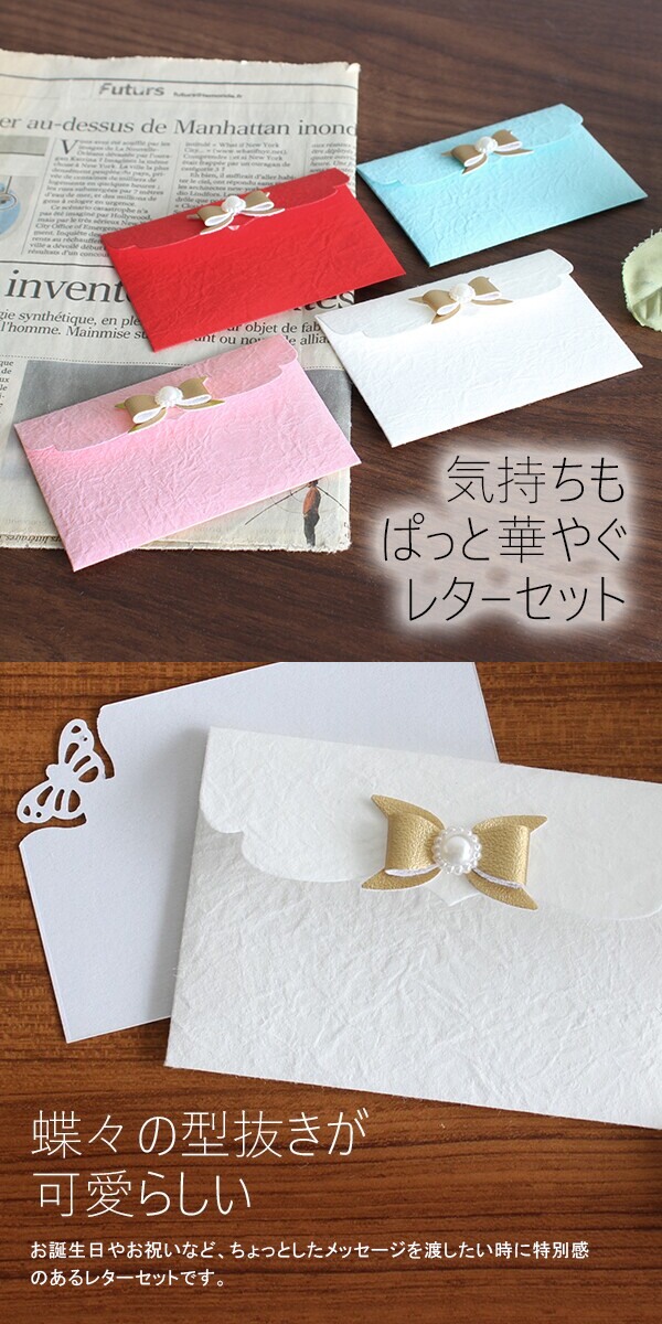 レターセット 無地 グリーティングカード メッセージカード カード 一筆箋 おしゃれ かわいい レター 手紙 合わせ揉み紙 レターセット リボン WH ⊇