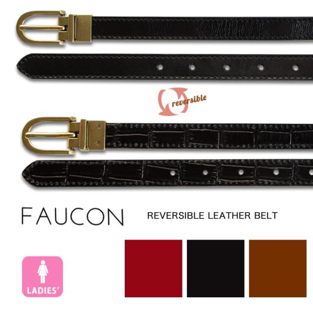 FAUCON フォコン リバーシブル 型押し レザーベルト 1011 細ベルト 型押し シンプル 牛革 バックル ベルト レディース 細い