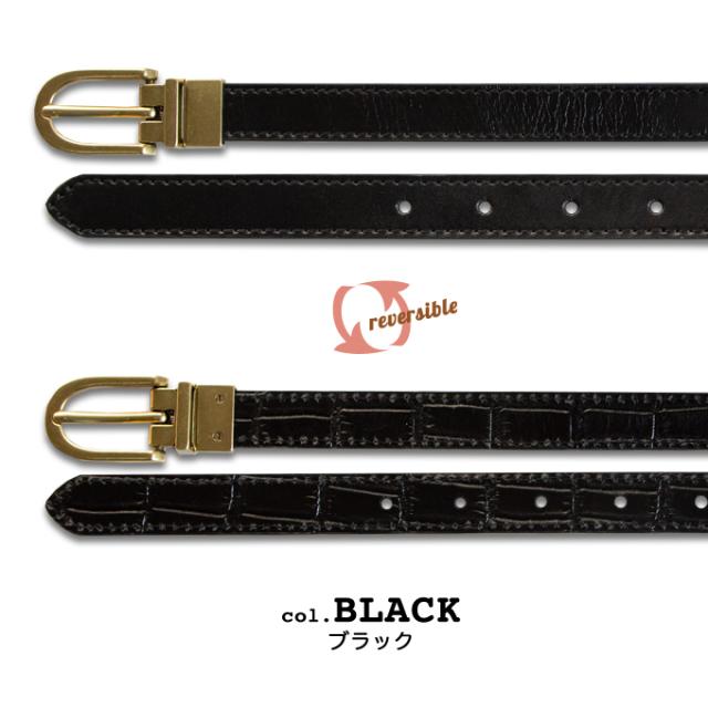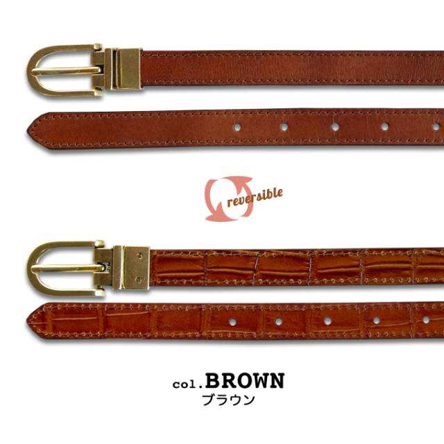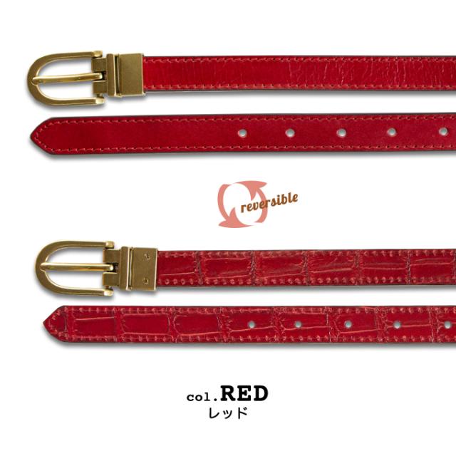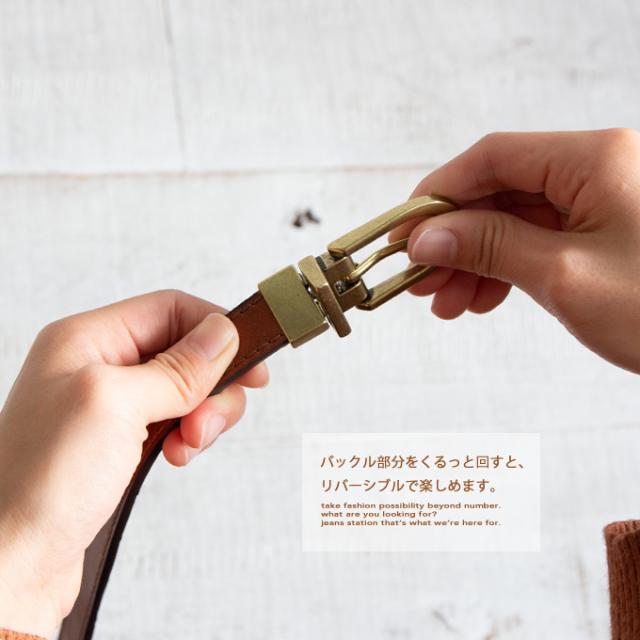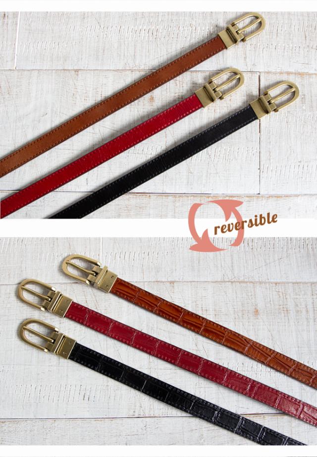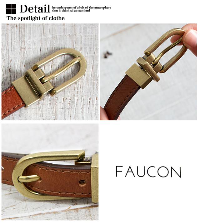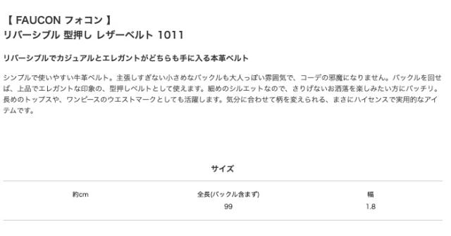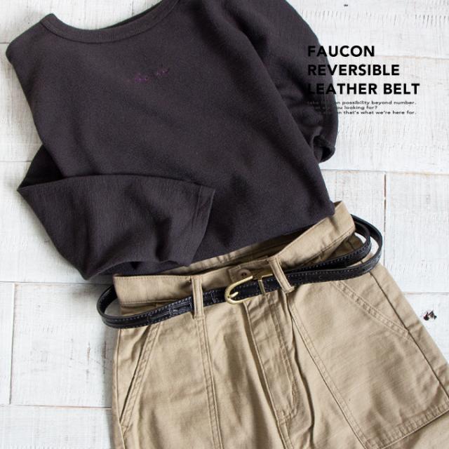 「 FAUCON フォコン 」 リバーシブル 型押し レザーベルト 1011 / 細ベルト 型押し シンプル 牛革 バックル ベルト レディース 細い
