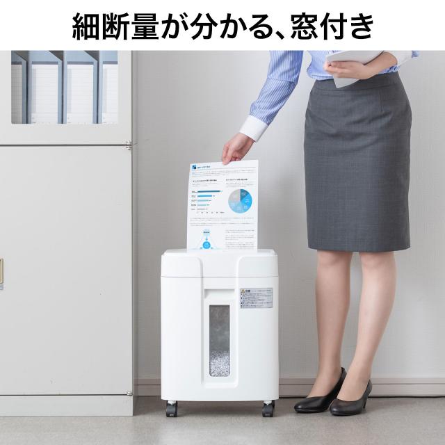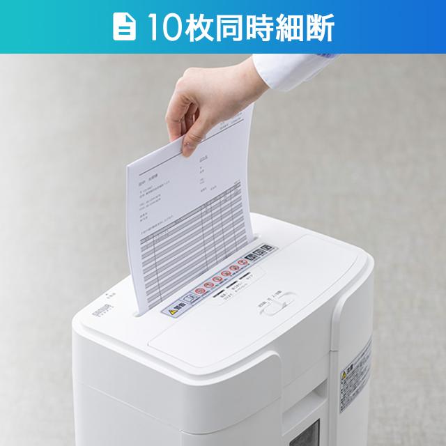 ●A4用紙を10枚同時に細断できる電動シュレッダーです。●セキュリティ性の高い2×12mmのマイクロカット仕様です。