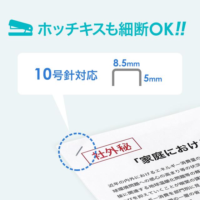 ※10号針以下のホッチキス針をしたままの細断に対応しています。