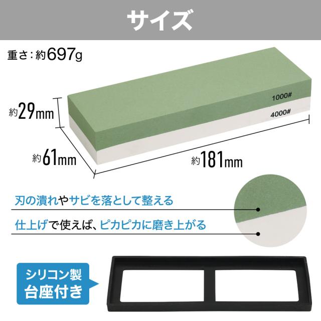 砥石 包丁研ぎ 研ぎ石 包丁切れ味 再生 シリコン台付き メンテナンス お手入れ #1000/#4000 画面 中両面 両面研石 中砥石 仕上げ砥石 研磨
