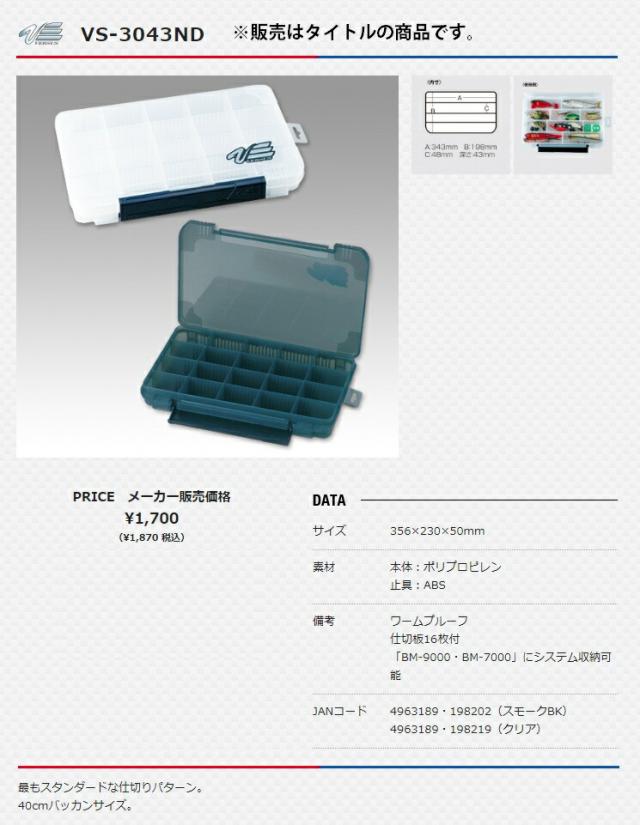 メイホウ タックルボックス 明邦化学 ツールケース VS-3043ND スモークBK サイズ356x230x50mm 仕切板16枚付 ワームプルーフ メイホー MEIHO バーサス VERSUS 在庫