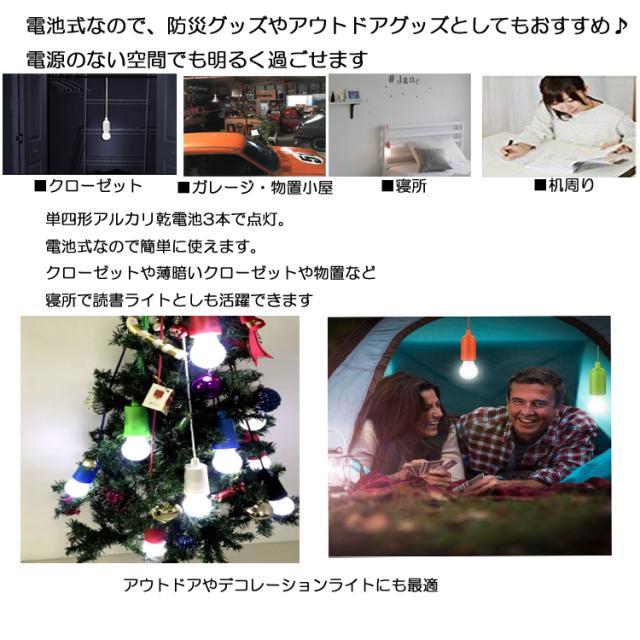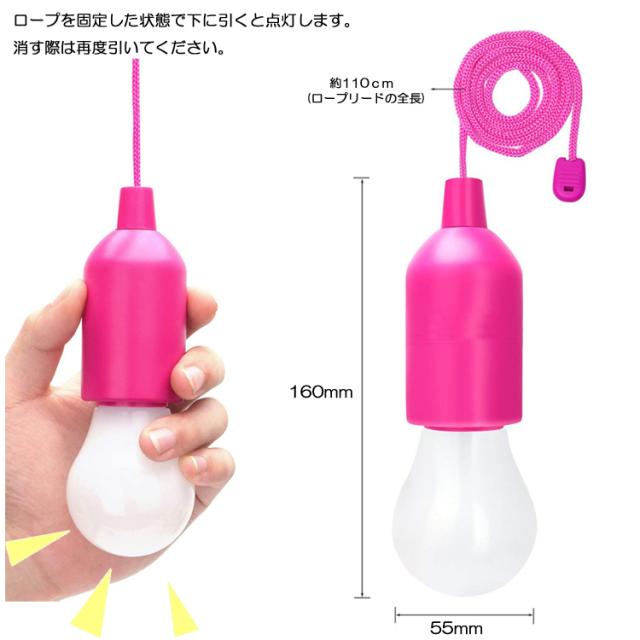 プルコード式電球型LEDライト 屋外照明 クリスマス装飾器具 アウトドア用 ポータブライト 乾電池式 CORDLED55