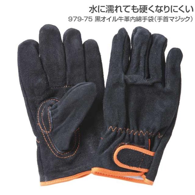 革手袋 黒オイル牛革内綿手袋 979-75 革手 作業用 普段用 土木 建設 溶接 一般作業