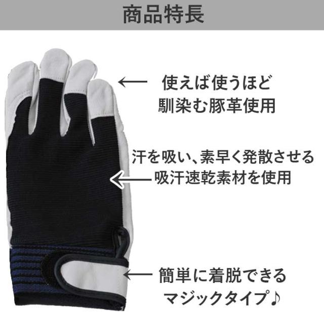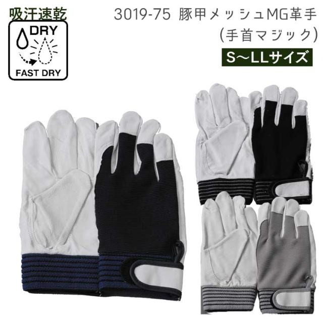革手袋 【豚甲メッシュMG革手 手首マジック 3019-75】 革手 作業用 普段用 予備