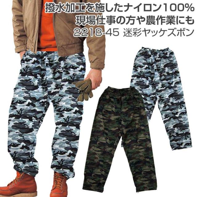 パンツ ヤッケ 下衣 【迷彩ヤッケズボン 2218-45】人気 おしゃれ メンズ ユニセックス ズボン カジュアル 迷彩 柄 カモフラ 梅雨 大きいサイズ 3L 4L 5L