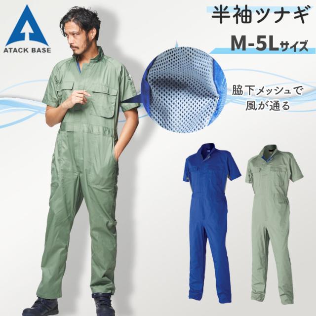 つなぎ 作業着 作業服 春夏 ワーク メンズ レディース 半袖ツナギ 3636-30 大きいサイズ 通気性 メッシュ アタックベース