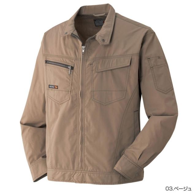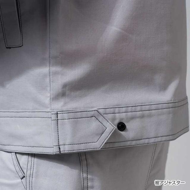 作業服定番の長袖ブルゾンは背中メッシュを採用し通気性を確保。裾アジャスターで調整すればスッキリとしたルックスに見えます。コストパフォーマンスにたけたワーキングブルゾンです。
