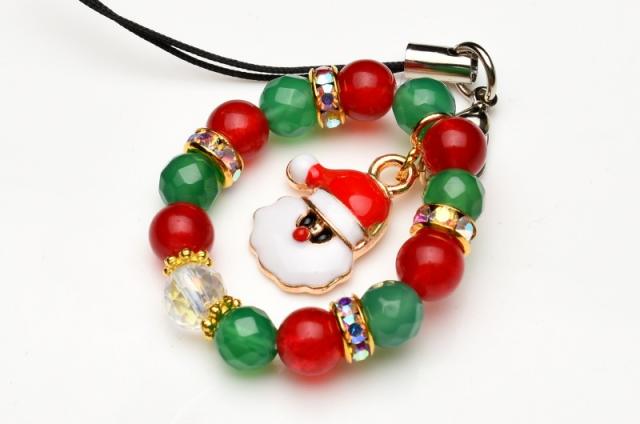 クリスマス ストラップ サンタクロース×リース 35mm パワーストーン 当店オリジナル_A1024