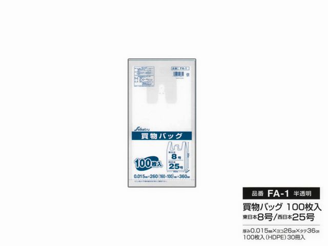 ●買い物バッグ レジ袋 東日本8号/西日本25号●厚み0.015mm ヨコ幅26cm(幅16cm/マチ10cm) タテ幅36cm●色:半透明乳白色●材質:HDPE(高密度ポリエチレン)●袋の素材は引っ張り強度が強く、耐熱・耐薬品性・耐ガスバリア性に優れます●透明度が低くレジ袋のようにカサカサした感触が特徴です製品名:買物バッグ乳白色タイプ(HDPE)東日本8号/西日本25号型番:FA-1メーカー:株式会社セイケツネットワーク【商品キーワード】ごみ袋 ゴミ袋 ポリ袋 保存袋 手さげ袋 買い物袋 ビニール袋 傘入れ袋 指定袋 規格袋 レジ袋