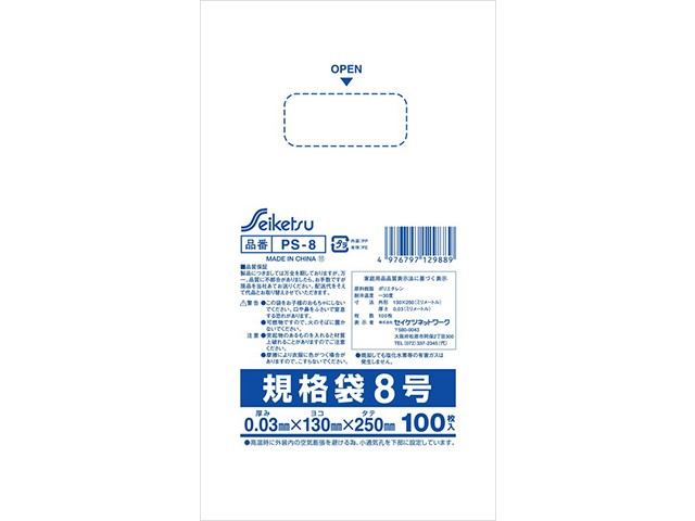 セイケツネットワーク セイケツパック規格袋8号 PS-8 透明 100枚X100パック