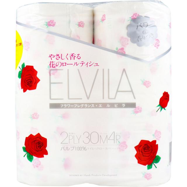四国特紙 トイレットペーパー ELVILA バラの香り ダブル30m 4ロールX12パック