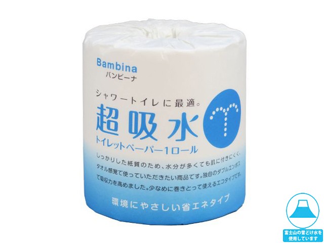 富士山の湧水を使用した個包装トイレットペーパーしっかりとした紙質のため水分が多くても肌に付きにくい仕様です独自のダブルエンボス加工で吸水力を高めました吸水力が抜群なため少な目に巻き取って使えるエコタイプシャワートイレに最適です【商品詳細】製品名:超吸水1R型番:1110ロールサイズ:114mm×27.5m ダブル(2枚重ね)ケース入数:100個ミシン目:有り色・表面:白・ダブルエンボス加工紙の材質:再生紙100%枚数:ダブルケースサイズ:525X524X476mm梱包方法:紙巻き個包装用途:業務用・家庭用・贈答用・販促用・イベント用製造メーカー:林製紙株式会社【商品検索キーワード】業務用トイレットペーパー,トイレットペーパーダブル,トイレットペーパーシングル,芯無しトイレットペーパー,ウオッシュレット用トイレットペーパー,香り付きトイレットペーパー,トイレットロール,カラートイレットペーパー