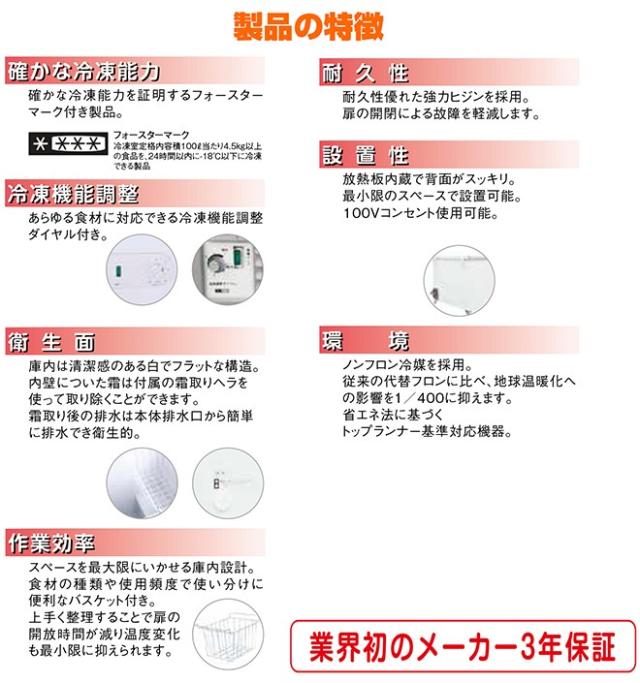 業務用冷凍庫 冷凍ストッカー マイナス20℃ 88L 3年保証 シェルパ 88-FOR