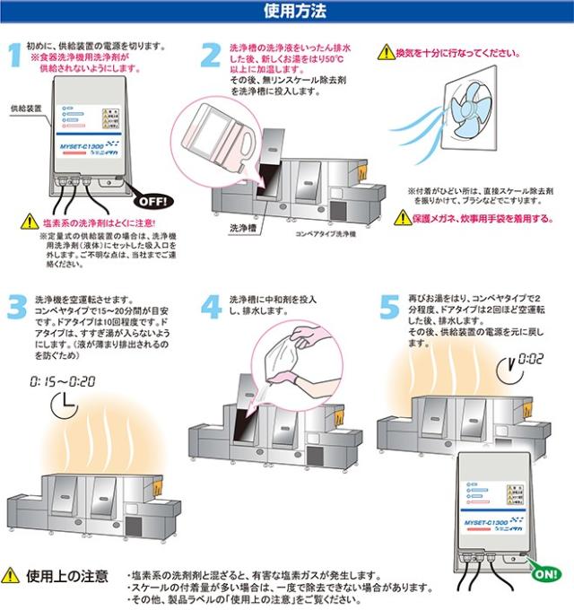 ●食器洗浄機内に固着したスケール・水垢などの汚れを溶解・除去します