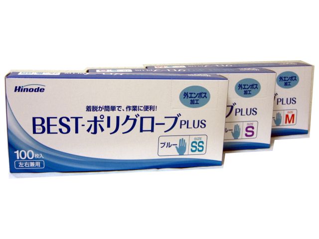 使い捨て手袋 ポリ手袋 BEST ポリグローブPLUS 青半透明 厚手タイプ 100枚x40箱 サイズ選択可