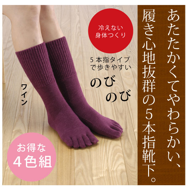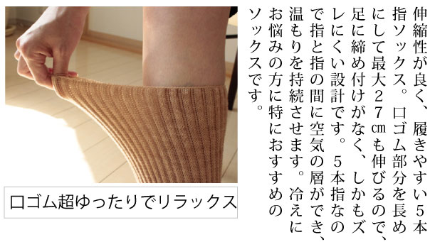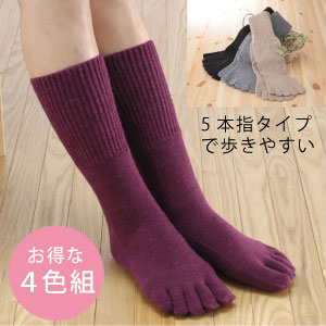 毛混口ゴムらくらく5本指ソックス4色組