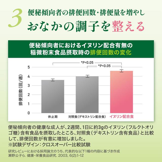 3, 便秘傾向者の排便回数・排便量を増やしおなかの調子を整える