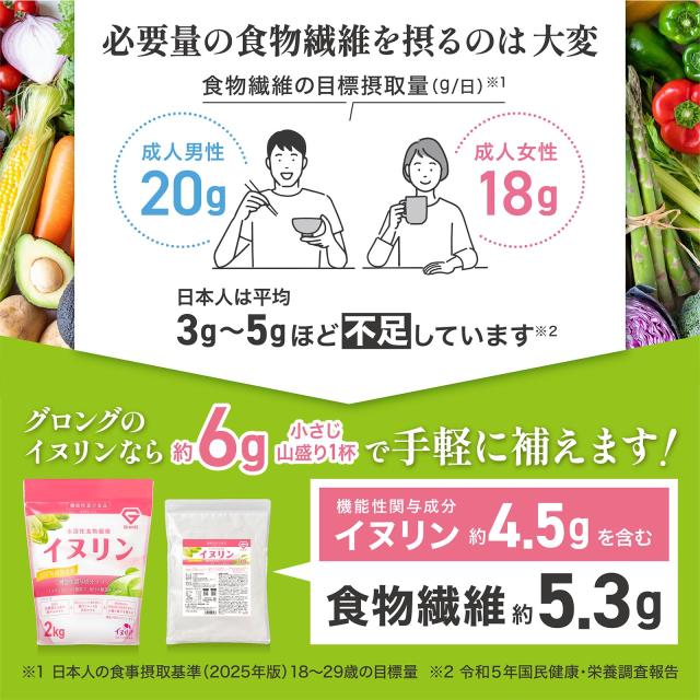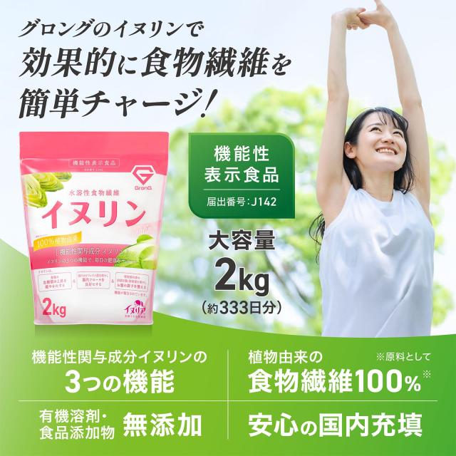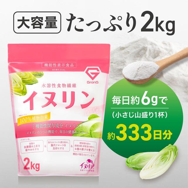 グロング イヌリン 2kg 機能性表示食品 イヌリンパウダー 食物繊維 パウダー 甘味料・添加物不使用