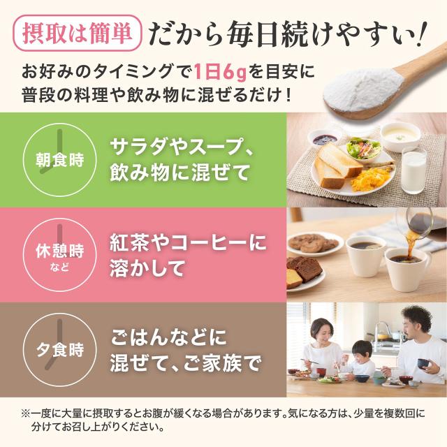 【「イヌリア」食物繊維100%】チコリ根から抽出された植物由来の水溶性食物繊維を採用。さらっと溶ける粉末タイプで、お料理からお飲み物まで、味を邪魔せず幅広いシーンでお使いいただけます。優しい甘みがあり、お砂糖の代用としてもおすすめです