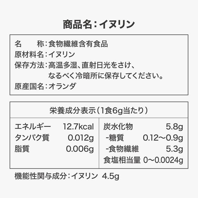 ●機能性関与成分(1食6g当たり):イヌリン/4.5g