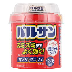 ◆特 長◆ ゴキブリとノミ・ダニを駆除するくん煙殺虫剤 ●「フタを取ってこするだけ」だから、始動操作が簡単です。 ●「煙がスミズミまで殺虫成分を運ぶ」から、かくれた害虫も駆除できます。 ●「耐熱容器を使用」だから、そのまま容器を置いて使えます。 ●火災警報器を煙から守る専用カバー付き。 ●初めてでも使い方がわかりやすいユニバーサルデザイン。 ※パッケージや添付文書の使用方法の表示が大きく、わかりやすいので、初めての方でも簡単にご使用いただけます。 12〜16畳用 <使用量> 天井までの高さ2.5mを目安として 40g:12〜16畳(20〜26平方メートル)に1個 【お客様へ】本商品は、(株)ライオン 同名品 (4903301368878)の販売メーカー「レック(株)」への変更商品です。 ◆メーカー(※製造国または原産国)◆ レック株式会社 〒104-0031 東京都中央区京橋2-1-3 消費者サービス部 03-6661-9941 受付時間 : 9:00 〜 16:00(平日のみ) ※製造国または原産国:日本 ◆効能・効果◆ ゴキブリ、屋内塵性ダニ類、イエダニ、ノミ、トコジラミ(ナンキンムシ)、ハエ成虫、蚊成虫の駆除 ◆用法・用量◆ <使用前に準備すること> 1.部屋(窓や換気口など)を閉め切り、害虫の隠れ場所となる戸棚、引き出し、押入れなどを開放する。なお、食品、食器、おもちゃ、寝具、衣類、仏壇仏具などは直接煙が触れないように、ビニールシートや新聞紙でカバーをするか、部屋の外に出す。 2.煙が触れないようにテレビ、パソコン、オーディオ製品などの精密機器やピアノなどの楽器にはカバーをする。ディスクやテープ類は付属のケースに入れる。 3.ペット類や観賞魚、植物などは部屋の外に出す。 4.煙を感知する火災警報器、微粒子を感知するガス警報器は反応することがあるので、袋などで覆う。 ※火災警報器、ガス警報器の取扱いについては、付属の説明書をよく読みご使用ください。 ●他の対処法 取り外す、プラグを抜く ※使用後は必ず元に戻してください <「バルサン」を始める> 1.部屋の床面のほぼ中央に本品を置き、内側のシールを完全にはがす。 2.始動用スリ板(黒いフタの茶色部分)で緑色のヘッド(突起物)を軽い力でこする。 ※強くこすりすぎると、ヘッドの破損や飛散の原因となるので注意してください。(こすると、一瞬小さな炎がでます) ※マッチ、ライター、水は使わないでください。 3.数秒後に約20〜30秒間勢いよく煙が出る。 煙が出始めたら部屋の外に出て、2〜3時間またはそれ以上、そのまま部屋を閉め切る。 <使用後に行うこと> 1.所定時間部屋を閉め切った後、煙を吸い込まないようにして窓や扉を開放し、充分に換気してから中に入る。 2.部屋の床は駆除した害虫を除去するため、掃除機をかける。 3.食器などが煙に触れた場合は、水洗いしてから使う。 4.使用後の容器は、各自治体の廃棄方法に従って捨てる。 ※屋内塵性ダニ類は死骸もアレルギーの原因になると言われています。 バルサンをした後、畳・カーペットのダニは掃除機をかけ取り除きましょう。 寝具類のダニ退治には、天日干し後、入念に掃除機をかけるか、クリーニングをおすすめします。 <用法・用量に関連する注意> ※使用する前に必ず使用上の注意をよく読んで正しくお使いください。 ※同じ部屋でノンスモーク霧タイプのくん煙殺虫剤を同時に使用しないでください。ノンスモーク霧タイプのくん煙殺虫剤の噴射ガスに「バルサン」の火が引火する危険性があります。 ※スプレー式殺虫剤(「バルサンまちぶせスプレー」など)、ヘアスプレーなどのエアゾール製品を使用した直後に使用しないでください。エアゾール噴射ガスに「バルサン」の火が引火する危険性があります。 ※注意:人体に使用しないでください。 ◆成 分◆ メトキサジアゾン 4%、フェノトリン 5% 添加物として アゾジカルボンアミド、酸化亜鉛、ヒプロメロース、ソルビタン脂肪酸エステル、ジブチルヒドロキシトルエン、香料、その他1成分 ◆使用上の注意◆ ●してはいけないこと (守らないと副作用・事故などが起こりやすくなります。) (1)病人、妊婦、小児は薬剤(煙)に触れないようにしてください。 (2)煙を吸い込まないように注意してください。万一吸い込んだ場合、咳き込み、のど痛、頭痛、気分不快等を生じることがあります。 (3)引火性危険物(ガス、ガソリン、シンナーなど)の近くでは使用しないでください。 (4)本品とエアゾール製品を同じ部屋で同時に使用しないでください。 (5)煙が出始めたら部屋の外に出て、戸を閉め切ってください。所定時間(2〜3時間)以上経過しないうちに入室しないでください。 (6)使用後は充分に換気をしてから中に入ってください。 ●相談すること (1)煙を吸って万一身体に異常を感じたときは、できるだけこの説明文書を持って直ちに本品がオキサジアゾール系殺虫剤とピレスロイド系殺虫剤の混合剤であることを医師に告げて、診療を受けてください。 (2)今までに薬や化粧品等によるアレルギー症状(発疹・発赤、かゆみ、かぶれな
