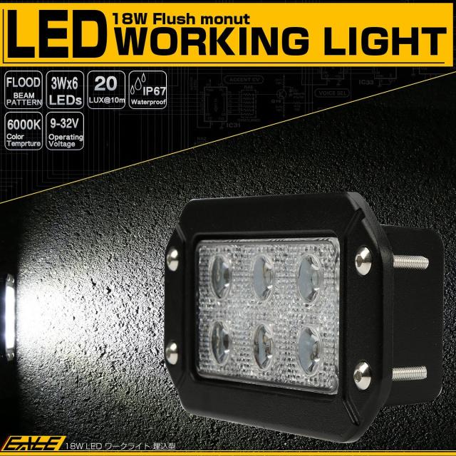 LED ワークライト 作業灯 埋め込み型 18W 角型 フォグランプ バックランプ 補助灯 12V 24V 防水 IP67 P-548