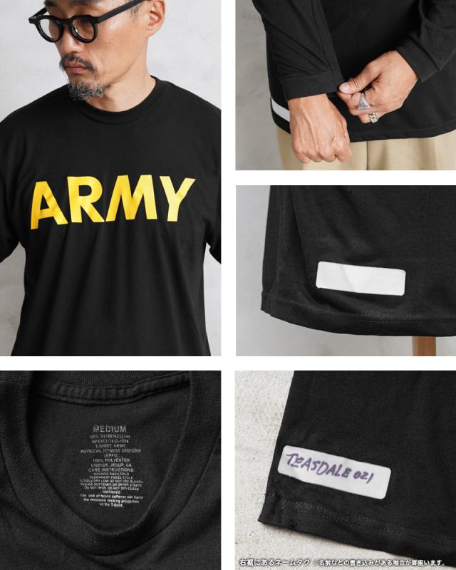 米軍で2014年から採用された PTTシャツは、速乾性に優れ、サラッとした着心地のポリエステル素材を使用しています。非常に伸縮性が良く程よい厚みで、ブラックに特徴的なARMYロゴは視認性の高いイエロープリントが目を惹く米軍らしいデザインです。 また右裾部分には個人名を書き込めるようなネームタグが取り付けられています。