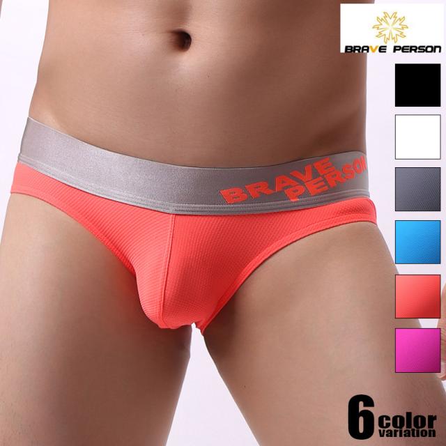 BravePerson/ブレイブパーソン サイドブランドロゴ入り 速乾 ストレッチ フロントモッコリフルバック ビキニブリーフ