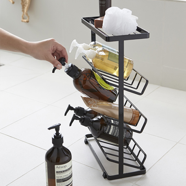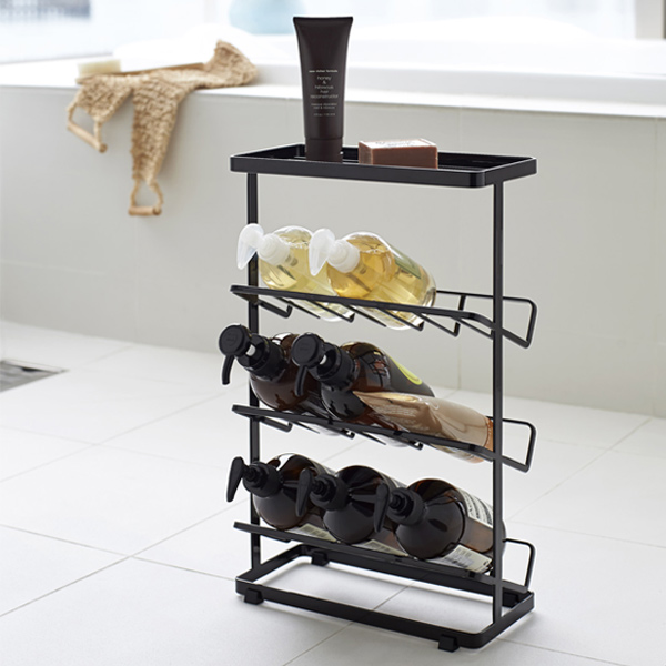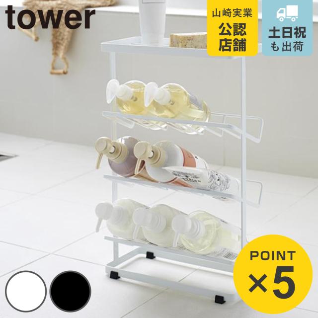 シャンプーラック バスラック 収納 3段 tower 山崎実業 シャンプースタンド バスカウンター 大容量 ( バスボトルラック ディスペンサーラック 風呂収納 バス バス用品 浴室 浴室収納 フック フック付 tower 山崎実業 お風呂 タワー)