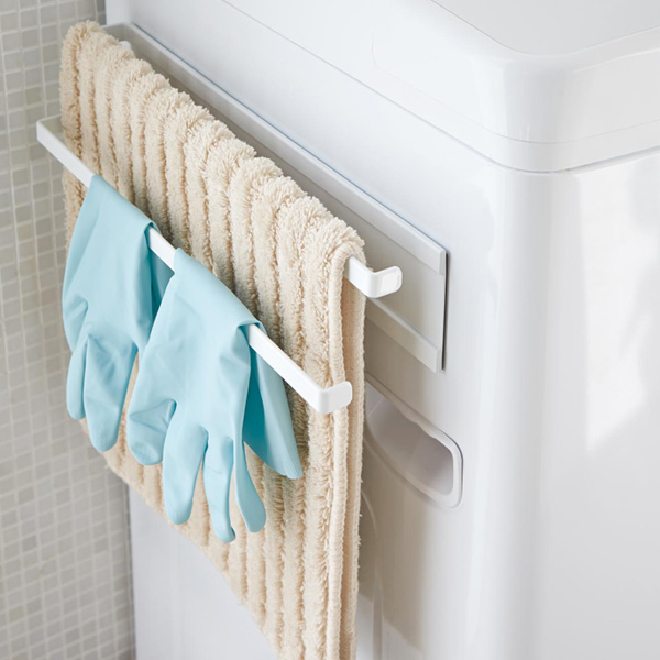 干し場に困るバスタオルやバスマットなどを、洗濯機横に省スペースで整頓できるタオルハンガーです。マグネット式でとても簡単に設置でき、洗濯機横のスペースを活用することができます。スリムで場所を取らず、無駄のないシンプルで洗練されたデザインで、洗濯機まわりをスッキリと整った印象にしてくれます。