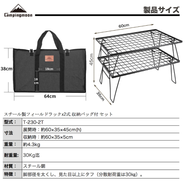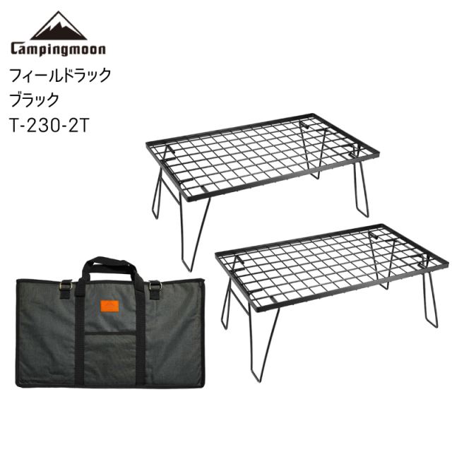 キャンピングムーン(CAMPING MOON) フィールドラック キャンプ ラック 折り畳みラック ブラック 収納バック付き 本体T-230 2点セット T-230-2T