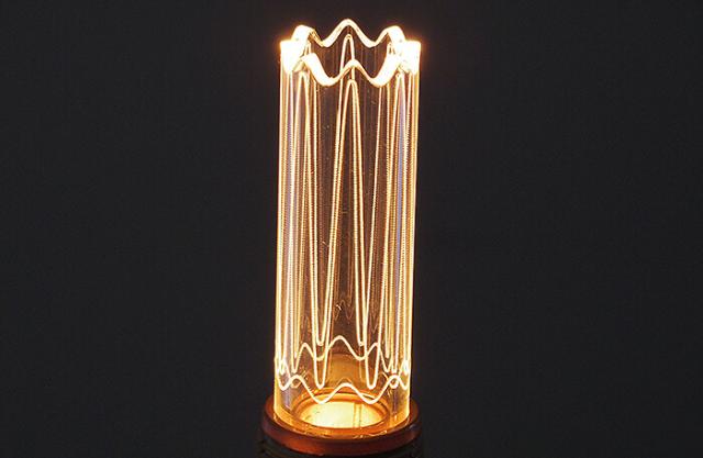 [ライフスタイルを華やかに]をテーマに、国内外の優れたインテリア雑貨の輸入やオリジナルデザインの開発などを行っているWEST VILLAGE TOKYOから繊細で暖かな灯りを再現したLEDバルブのご紹介です。節電ができるLED電球がいいけどノスタルジックで優しい灯りが良いなんて思っている方におすすめの電球です。特殊なレーザー技術によって施されたライン加工により、まるでカーボン電球のフィラメントのような灯りを再現しておりレトロな雰囲気のなかに暖かみを感じることができます。LEDといえば物凄く明るいイメージですが、こちらの電球は光源が口金部分に埋め込まれているので、光が直接目に入ることがなく、ずっと眺めていられる優しい灯りを放ちます。ダクトレールなどにいくつか並べて使用しても電気代の心配がなく、お部屋が熱くなる事もありません。