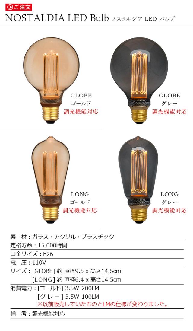 EDISON BULB エジソンバルブ NOSTALGIA LED BULB [ GLOBE / LONG ] 電球 e26 led led電球 エジソン球 長寿命 エコ 省エネ 節電 LEDバルブ レトロ モダン おしゃれ ビンテージ 裸電球 ガラスカバー アンティーク ノスタルジック 優しい灯り【12時迄のご注文は当日発送】
