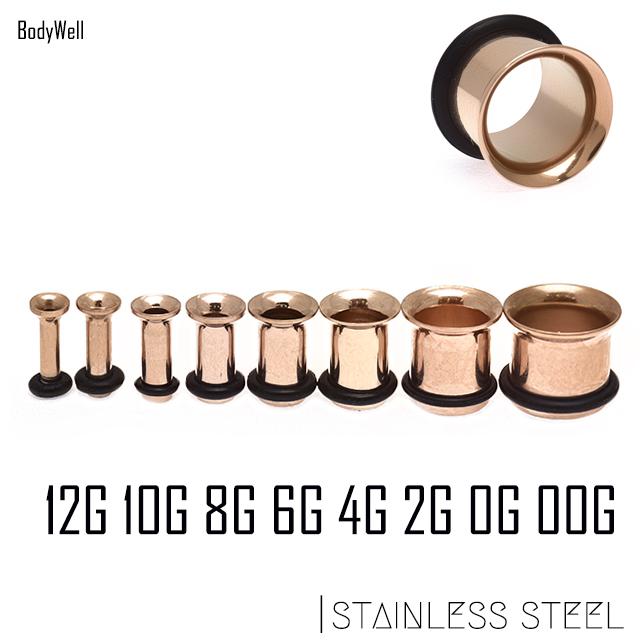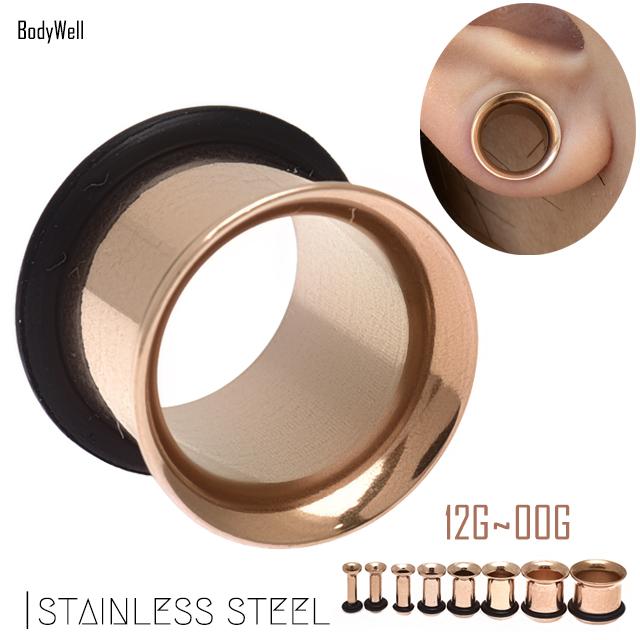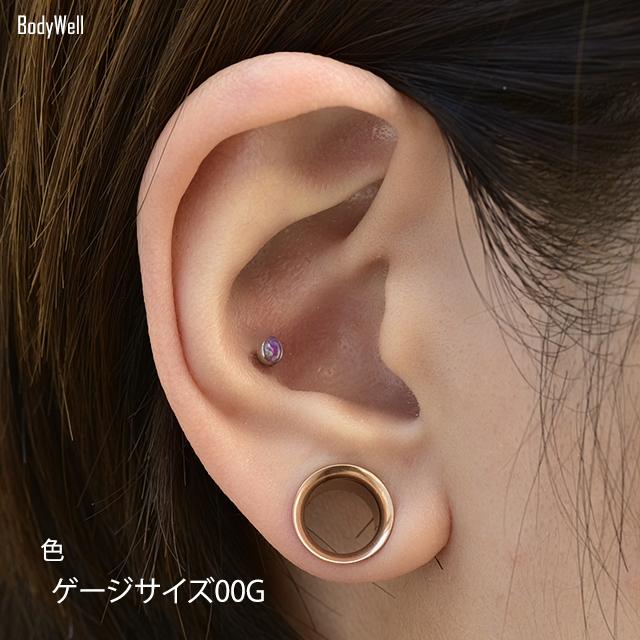 ボディピアス 4G 2G 0G 00G 日本人の肌に相性がいい ピンクゴールド シングルフレア トンネルピアス 拡張ピアス