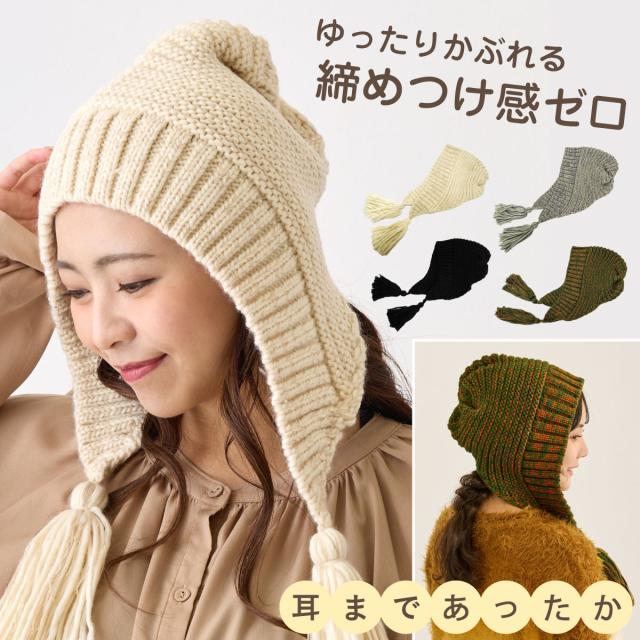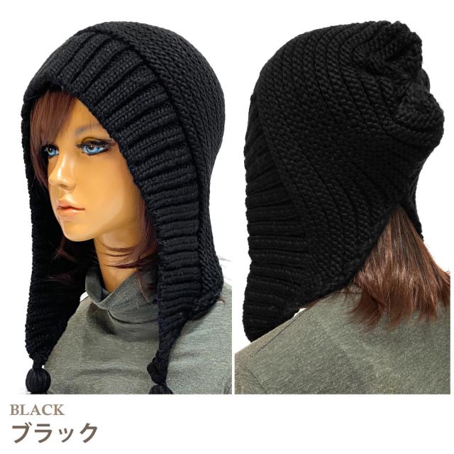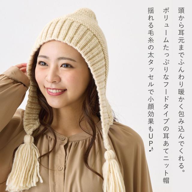 締め付け感ゼロ フード ニット帽 レディース 耳あて付き 揺れるタッセル 帽子 民族風 バブーシュカ 冬 耳まであったか フード帽 knit-1616 メール便は送料無料 耳あて ニット 冬 メンズ 防寒 ボンネット 男女兼用 バラクラバ お洒落 アウトドア 男性 女性