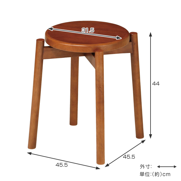スツール 丸 木製 高さ44cm 2脚セット コンパス ブラウンフレーム 天然木 ( 椅子 チェア 木製スツール 完成品 イス 腰掛け いす チェアー 丸椅子 スタッキング おしゃれ 踏み台 ディスプレイ台 )