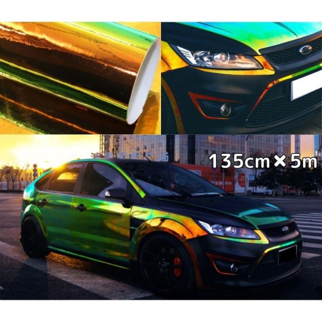 レインボーメッキ 135cm×5m グリーン カーラッピングフィルム 耐熱耐水曲面対応裏溝付 マジョーラカメレオンカッティングシート
