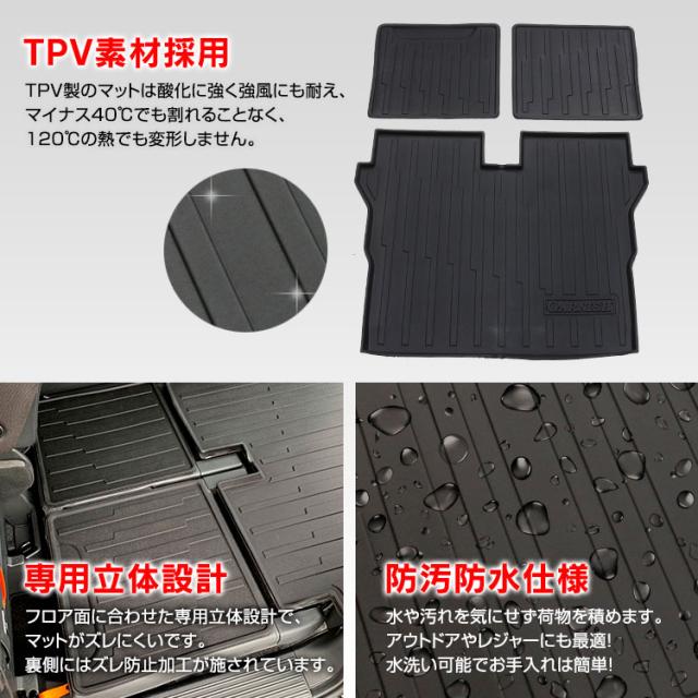 | 適合車種:ホンダ N-VAN JJ1/2 適合年式:2018年7月〜 ピース数:3pcs 材質:TPV素材(変形しにくい素材、ズレ防止) |