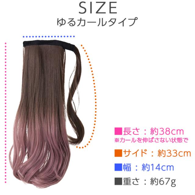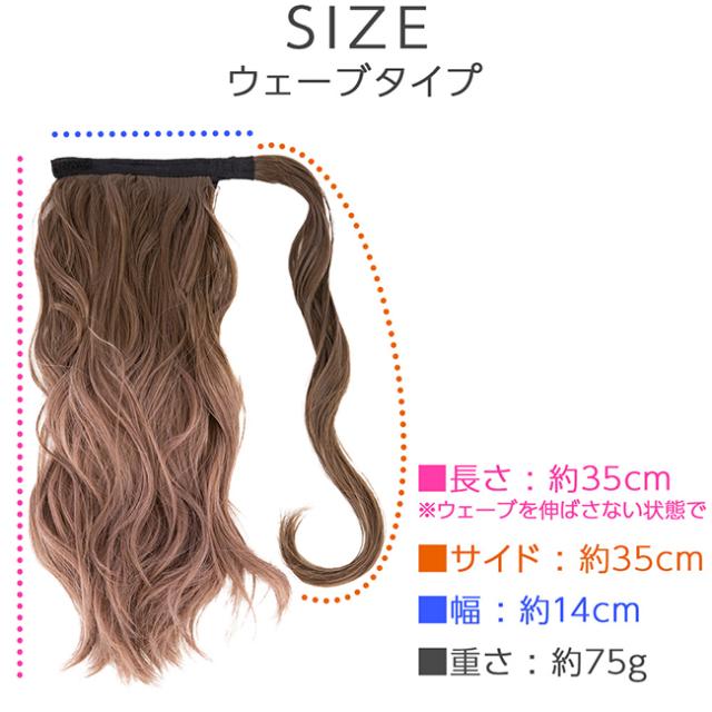 | 髪の長さ | [ウェーブタイプ]約35cm サイド:約35cm 幅:約14cm [ゆるカールタイプ]約38cm サイド:約33cm 幅:約14cm |