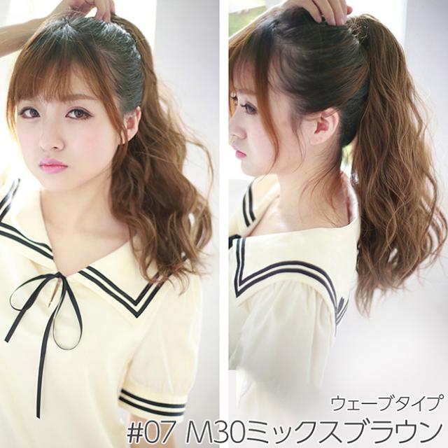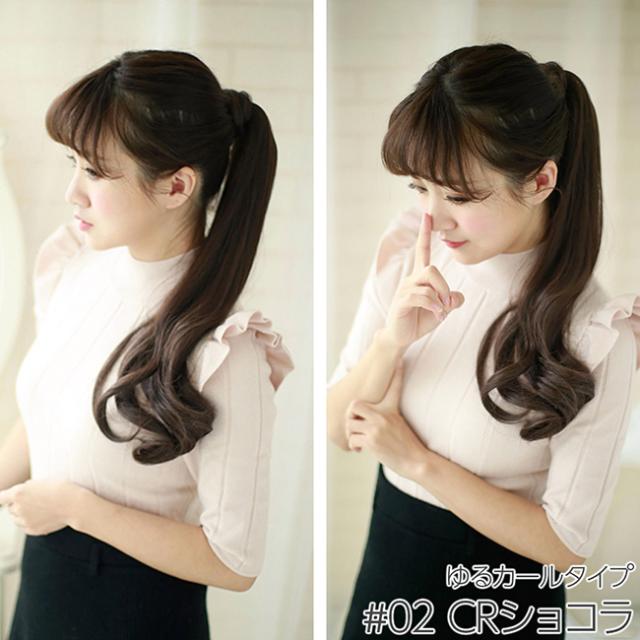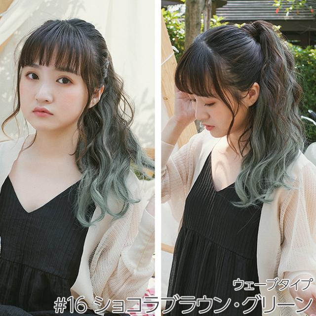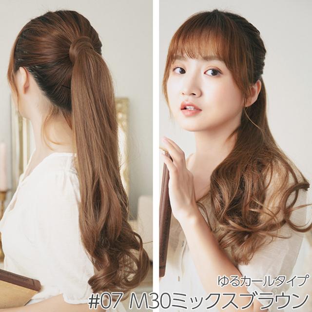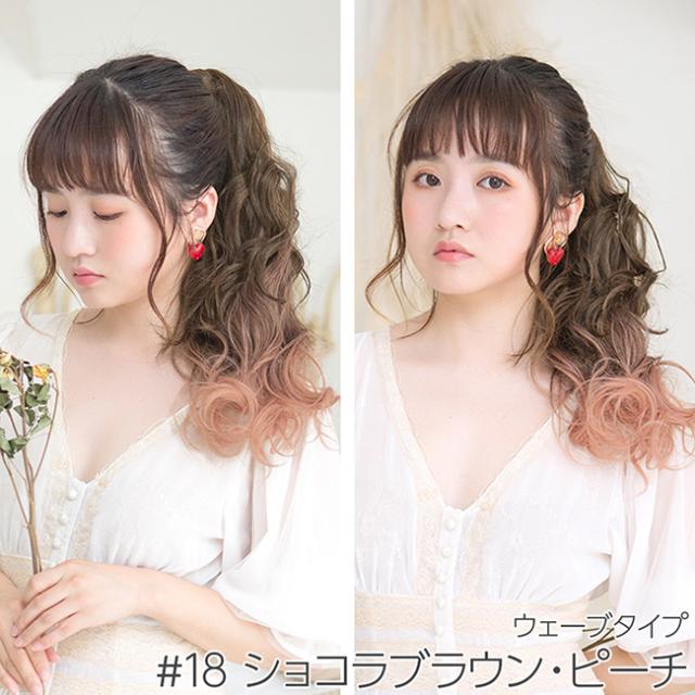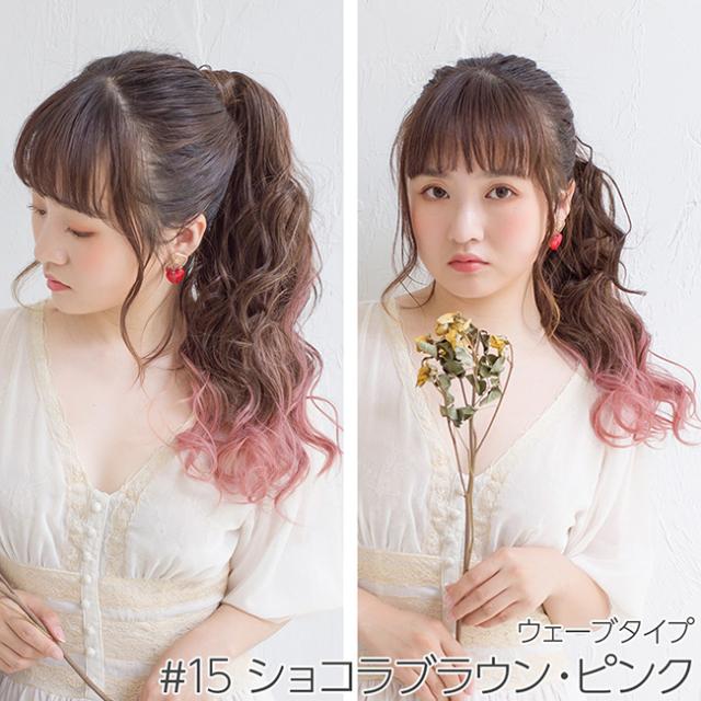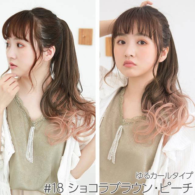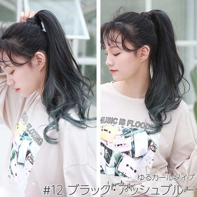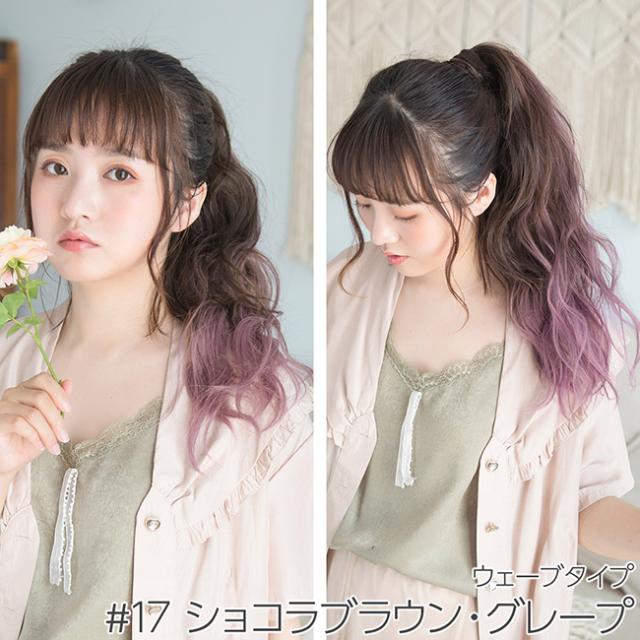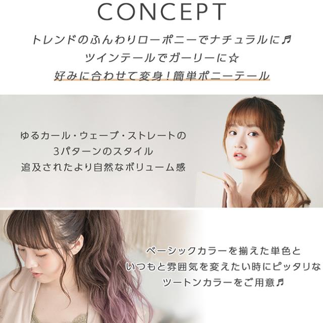 マジックテープで巻き付けるタイプのポニーテールウィッグ。ゆるカール、ウェーブ、ストレートの3typeから選べます。アレンジもしやすく、巻き付ける部分も自然な仕上がりに!単色とグラデーションカラーの全20色