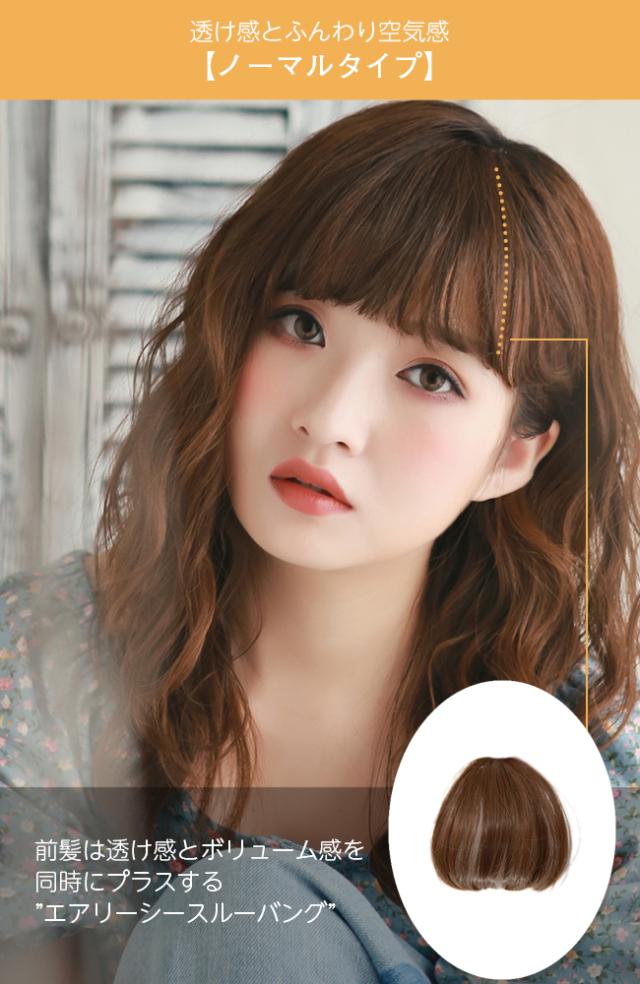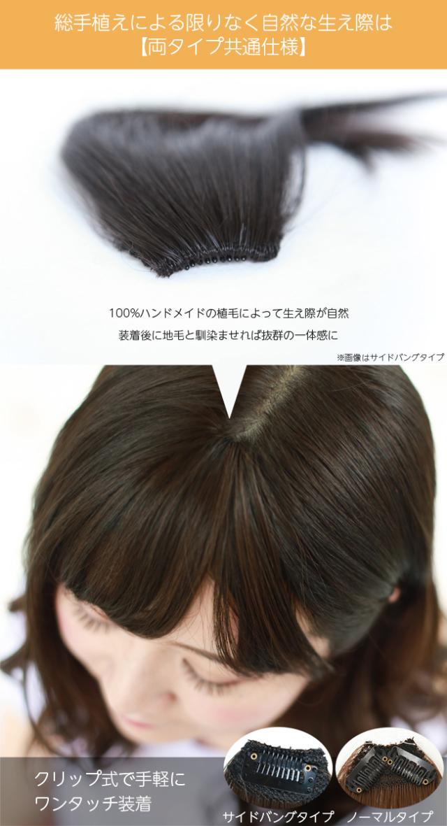 ふんわり軽いつけ心地♪ノーマルタイプの総手植え前髪ウィッグ。クリップで留めて簡単装着。