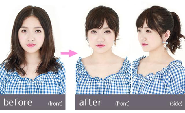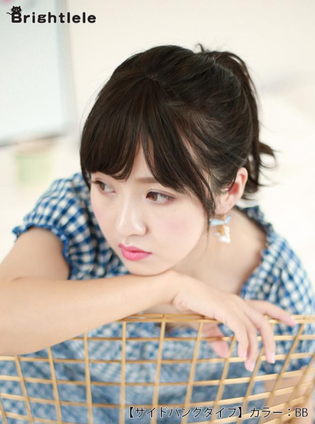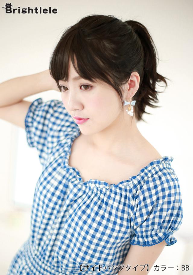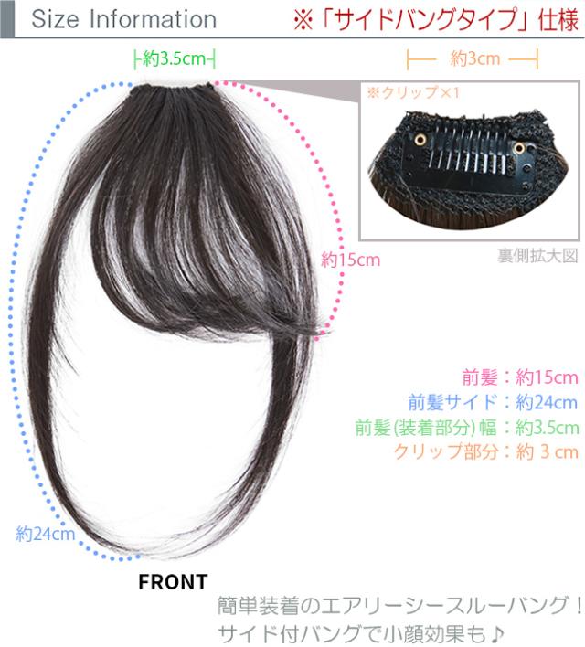 サイドバングタイプの総手植えサイド付き前髪ウィッグ。クリップで留めて簡単装着。