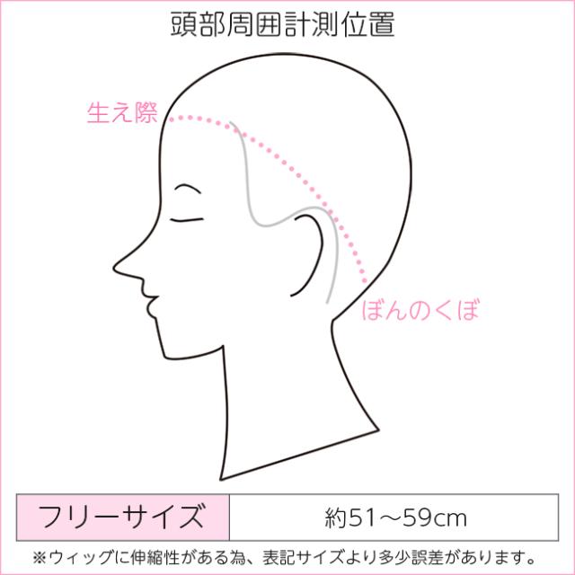 | サイズ | フリーサイズ:アジャスターでサイズ調整可能 ※ウィッグに伸縮性がある為、表記サイズより多少誤差があります。 |